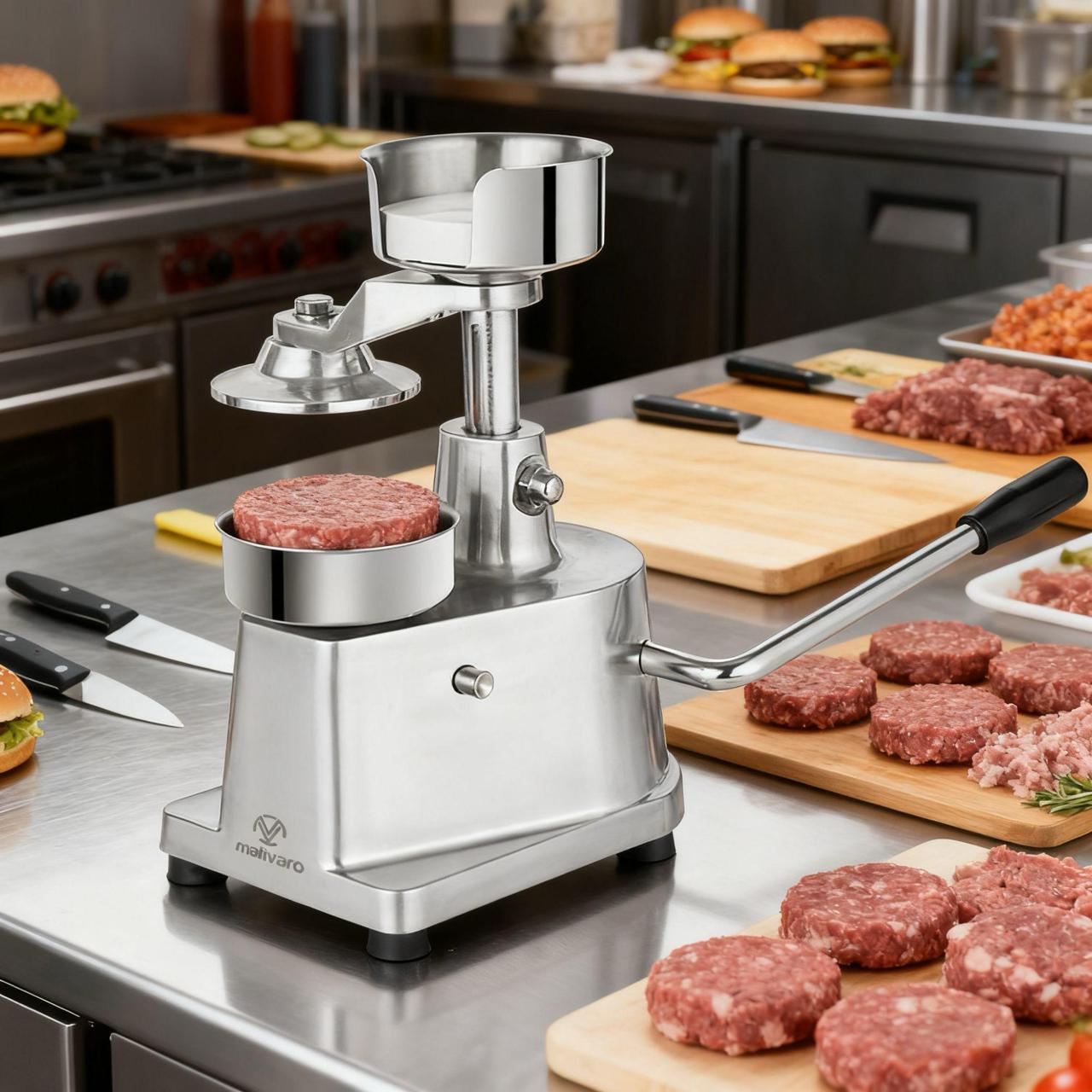 • Patty-Durchmesser: 100 mm (10 cm) für perfekt geformte Burger-Patties